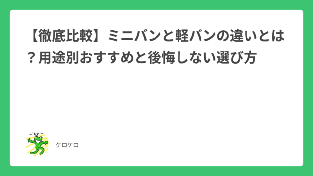 【徹底比較】ミニバンと軽バンの違いとは?用途別おすすめと後悔しない選び方